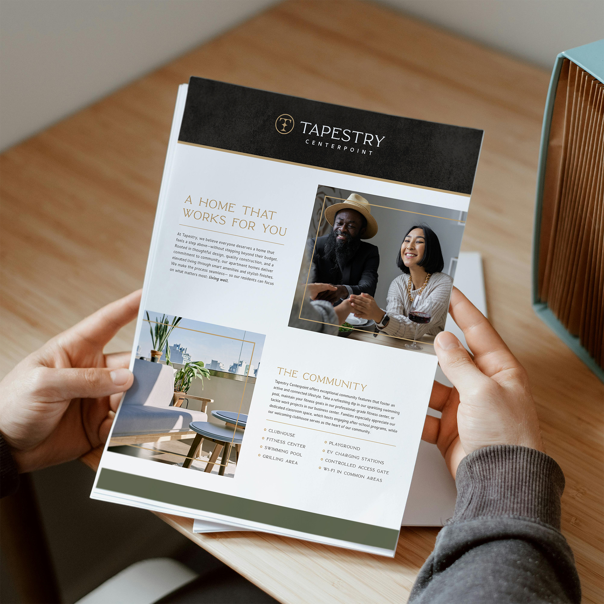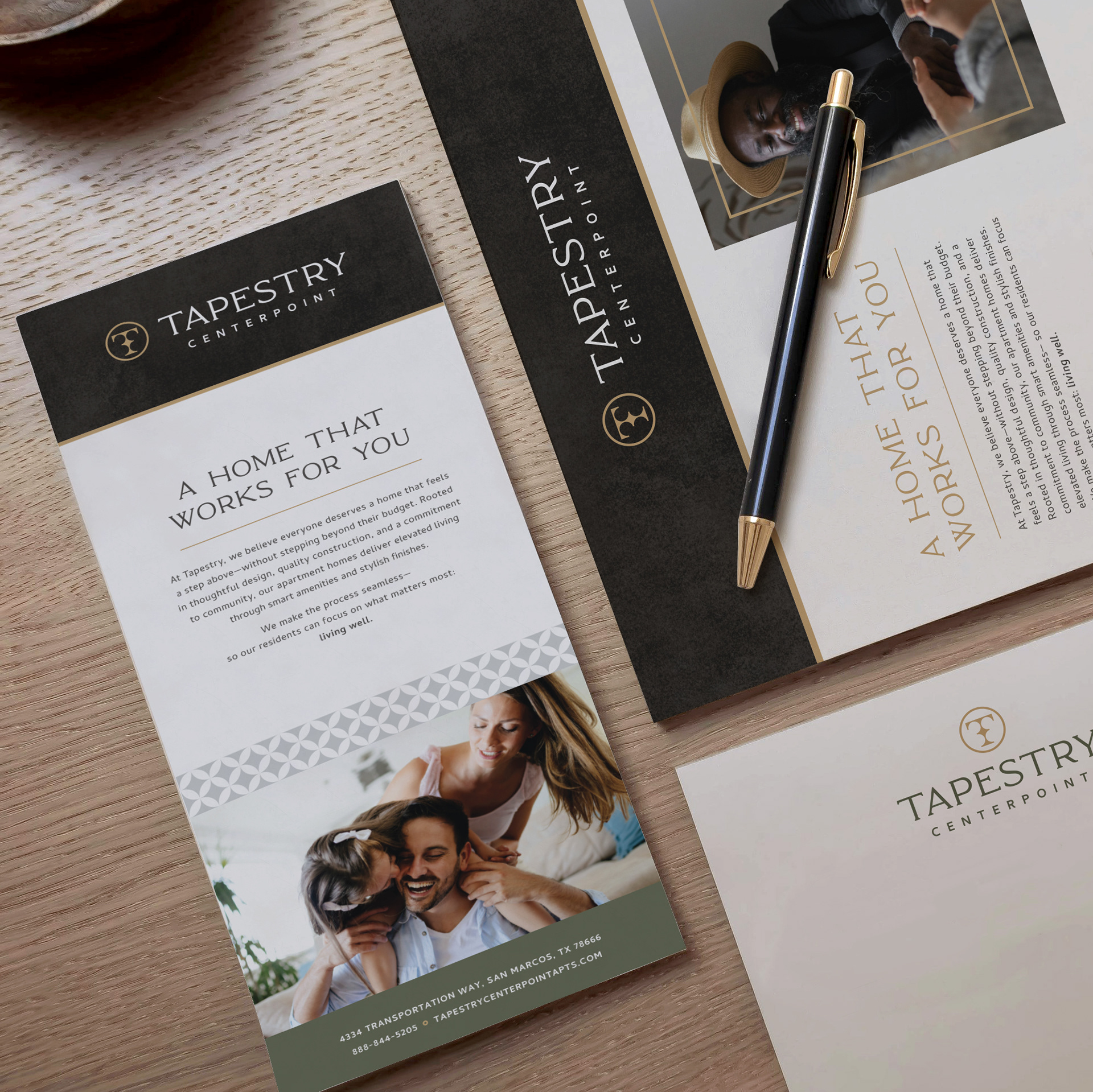 The collateral featured on this page shows the print products designed for Tapestry Centerpoint.